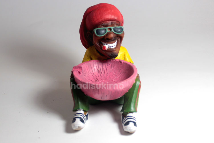 Asbak Unik berbahan material fiber dengan bentuk orang santai sambil berpose memegangi asbak, selain bentuknya yang menarik fiber asbak ini juga dapat dipajang dirumah sebagai hiasan meja ruang tamu anda. |