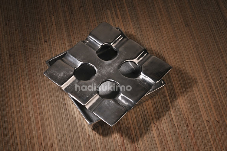Asbak Kotak Lubang 4 ( 51042134)Rp. 43.000 Asbak merupakan tempat membuang abu dan putung rokok. Asbak yang terbuat dari alumunium ini selain memiliki bentuk unik dan menarik, asbak ini juga tahan lama sehingga cocok untuk dijadikan souvenir ataupun hanya sekedar koleksi yang anda letakkan di meja untuk mempercantik meja di rumah anda. Material : Alumunium
