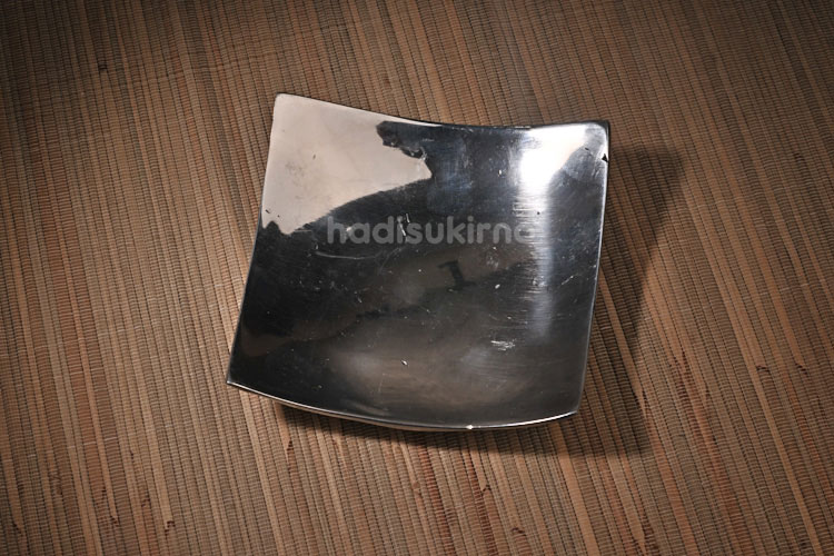 Baki Kotak Lengkung (51041844)Rp. 24.000 Baki berbentuk persegi empat ini bagus digunakan sebagai hiasan rumah yang diletakkan dialmari kaca dengan peletakkan sedikit miring. Baki ini juga cocok untuk dijadikan souvenir atau hadiah pada teman. Material : alumunium