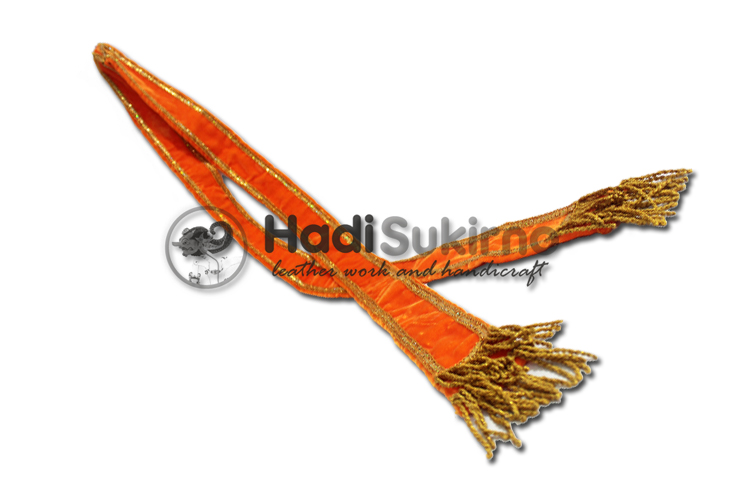 Sebe ShintaRp. 270.000 Sebe merupakan salah satu aksesoris yang digunakan dalam pertunjukkan wayang orang. Sebe digunakan dengan cara dislempangkan pada bahu dan badan. Beberapa peraga wayang yang menggunakan Sebe adalah Shinta, Rama, Lesmana dan Trijatha. Untuk Sebe wayang Shinta sendiri biasanya berwarna hitam, disesuaikan dengan baju atau mekak yang dikenakan. Sebe berukuran panjang kurang lebih 150cm dengan lebar 7 cm, pada kedua sisinya dihiasi dengan jahitan plisir emas, diujungnya sebe dihiasi dengan gombyok atau rumbai-rumbai berwarna kuning emas. Material : Beludru, Gombyok dan Plisir Emas |